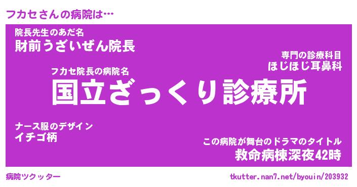 | ピコ太郎風あだ名 | 『フコ八郎』『ピフ八郎』『フカ五郎』 |