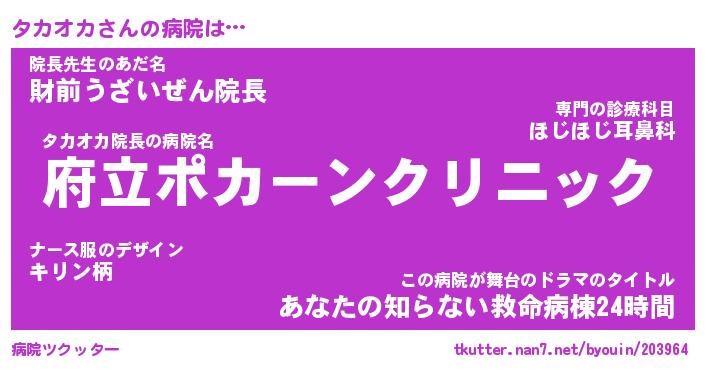 | 意味不明あだ名 | 『ペロリンタカオカ』『永久保存タカオカ』 |