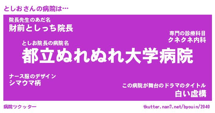 | ポケモン風あだ名 | 『トシチュウ』『トシオダネ』 |