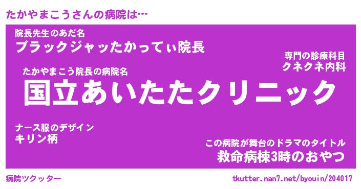 | 肩書あだ名 | 『たかやまこう御曹司』 |