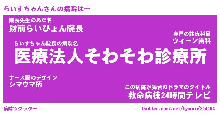 | ヘコむあだ名 | 『らいふぇ~』『酢こんぶ』『らいを』 |