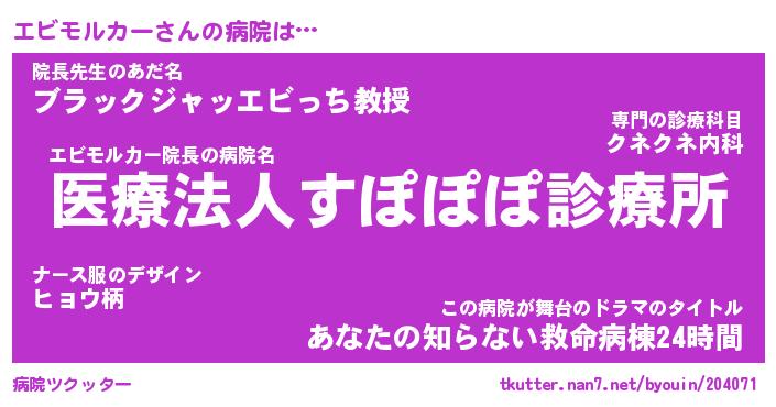 | 自動車の名前っぽいあだ名 | 『エビティマ』『エスラー』『エンR』 |