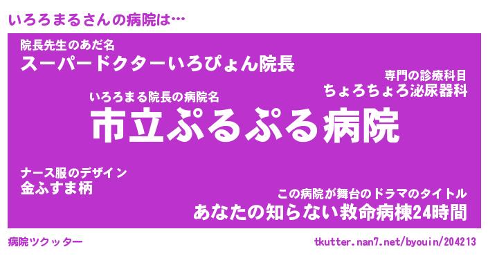 | 男性向けラノベタイトル風あだ名 | 『いろろまるの憂鬱』 |