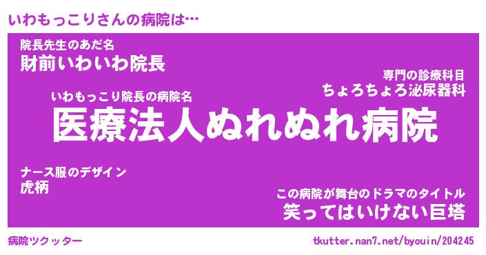 | 2回繰り返すあだ名 | 『いわいわ』『いいわわ』『ぬれぬれ』 |