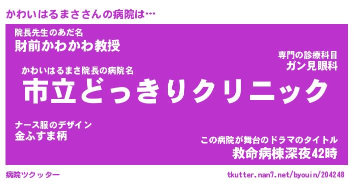 | 胡散臭い通販商品みたいなあだ名 | 『必ず成功する霊験あらたかなお札…その名も「かわいはるまさ」』 |