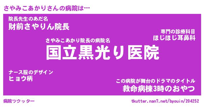 | 胡散臭い通販商品みたいなあだ名 | 『必ず成功するブレスレット…その名も「さやみこあかり」』 |