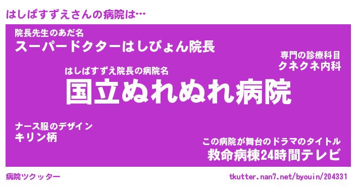 | 胡散臭い通販商品みたいなあだ名 | 『必ず成功する水晶球…その名も「はしばすずえ」』 |