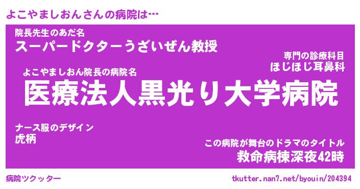 | ヘコむあだ名 | 『よこにー』『豆乳』『よこぷりん』 |