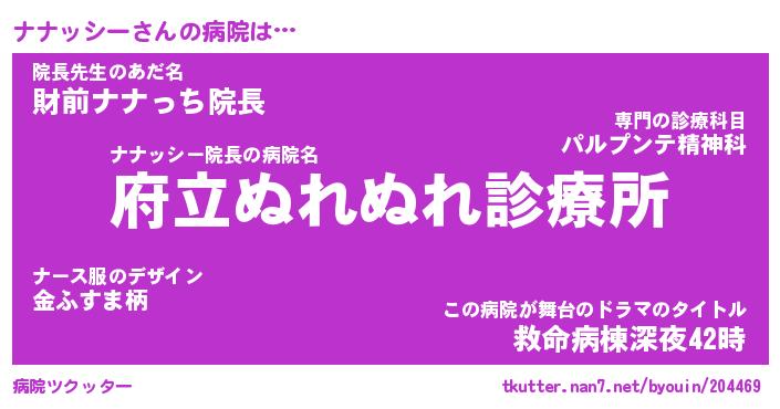 | 自動車の名前っぽいあだ名 | 『ナナティマ』『ナスラー』『ナンR』 |
