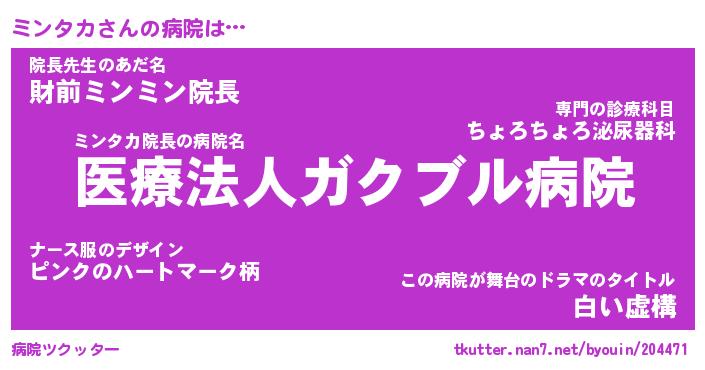 | ヘコむあだ名 | 『ミンにゅー』『酢こんぶ』『ミンを』 |