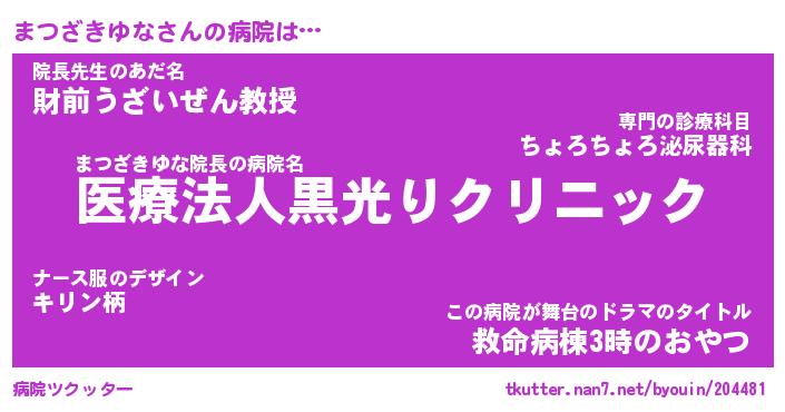 | 恥ずかしいあだ名 | 『プリティーまつざきゆな』『まつっちょ』 |