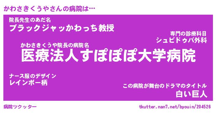 | ヒーロー風カッコイイあだ名 | 『スーパーカワサキクウヤ』 |