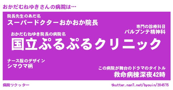 | 女子向けラノベタイトル風あだ名 | 『(仮)おかだむねゆきのやんごとなき事情』 |