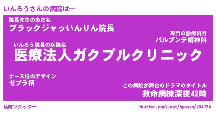 | 意味不明あだ名 | 『ペロリンいんろう』『永久保存いんろう』 |
