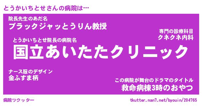 | 女子向けラノベタイトル風あだ名 | 『(仮)とうかいちとせのやんごとなき事情』 |