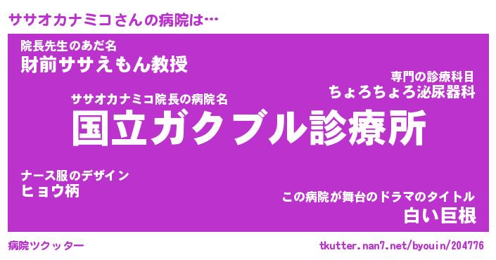 | ポケモン風あだ名 | 『ササチュウ』『ササオダネ』 |
