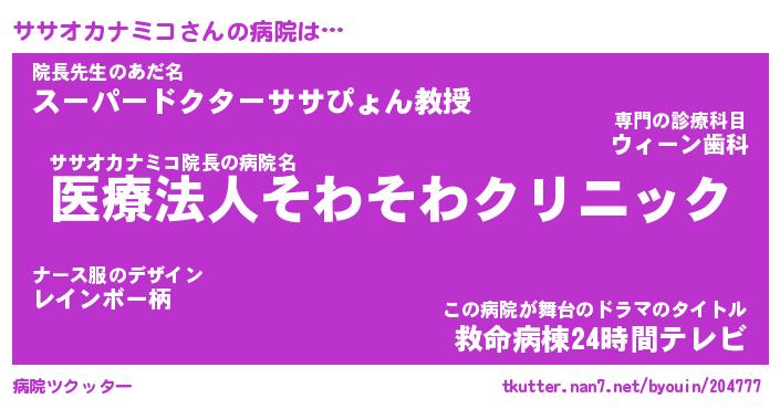 | ヘコむあだ名 | 『ササふぇ~』『牛乳』『ササお』 |