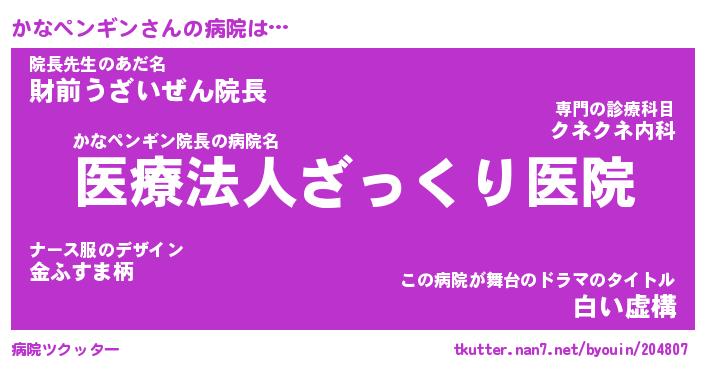 | 欧米人風あだ名 | 『マイケルかなペンギン』 |