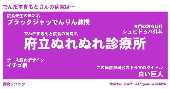 | 男性向けラノベタイトル風あだ名 | 『でんだすぎもとの憂鬱』 |