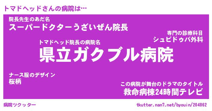 | 男性向けラノベタイトル風あだ名 | 『トマドヘッドの憂鬱』 |