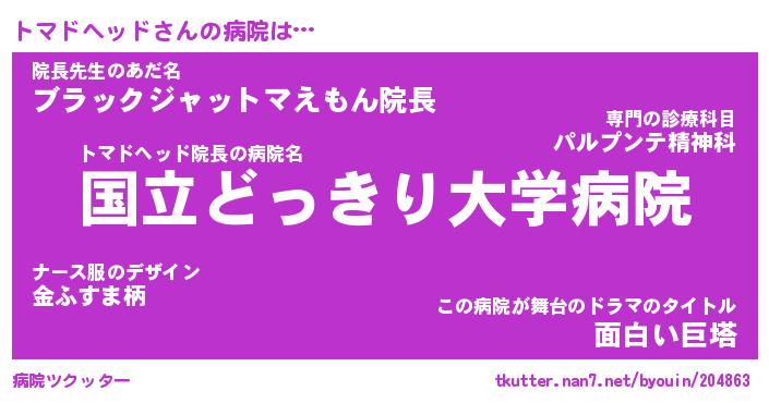 | 女子向けラノベタイトル風あだ名 | 『(仮)トマドヘッドのやんごとなき事情』 |