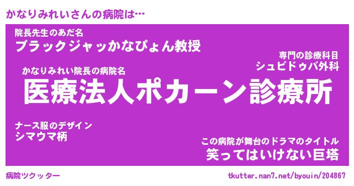 | ツイッター | かなりみれいさんのツイッターID『dendenmushi_idle』 |