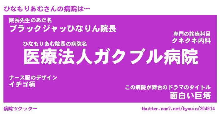 | ヒーロー風カッコイイあだ名 | 『スーパーヒナモリアム』『暗黒騎士ヒナ』 |
