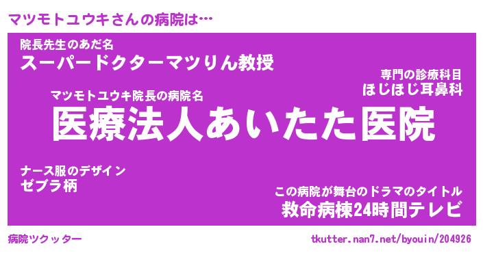 | 肩書あだ名 | 『マツモトユウキ御曹司』 |