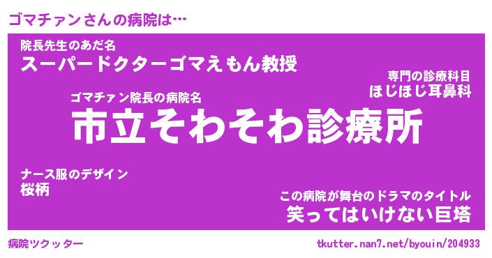 | 男性向けラノベタイトル風あだ名 | 『ゴマチァンの憂鬱』 |