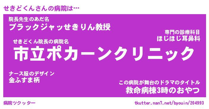 | 男性向けラノベタイトル風あだ名 | 『せきどくんの憂鬱』 |