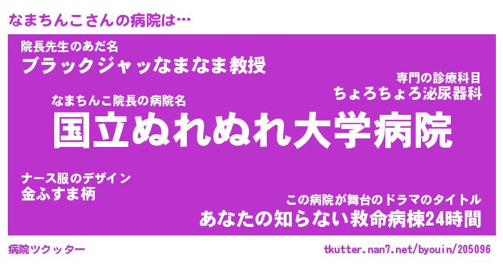 | 男性向けラノベタイトル風あだ名 | 『なまちんこの憂鬱』 |