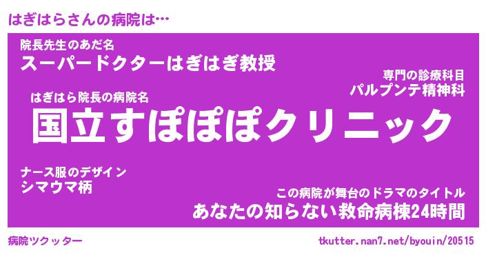 | ピコ太郎風あだ名 | 『ハコ五郎』『ピハ太郎』『ハギ三郎』 |