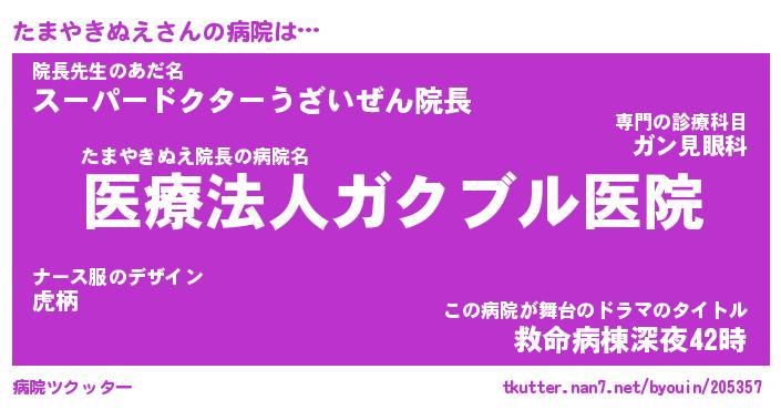| 恥ずかしいあだ名 | 『プリティーたまやきぬえ』『たまっちょ』 |