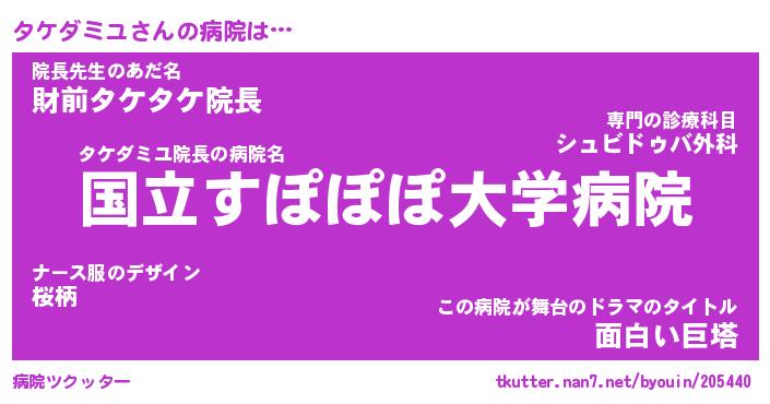 | ファンタジー風あだ名 | 『タケフェル』『エターナルタケダミユー』 |