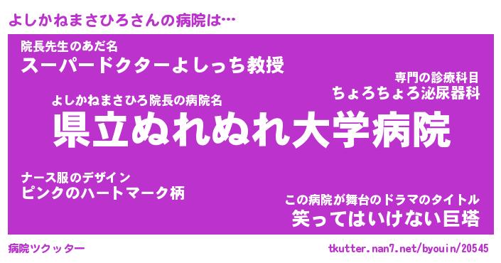 | 男性向けラノベタイトル風あだ名 | 『よしかねまさひろの憂鬱』 |