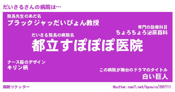 | 意味不明あだ名 | 『ペロリンだいさる』『永久保存だいさる』 |