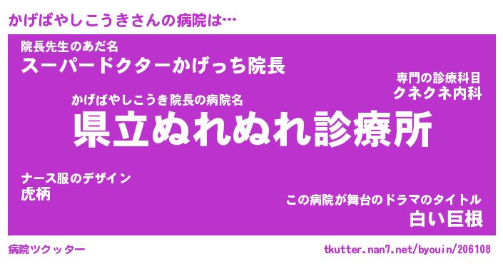 | 欧米人風あだ名 | 『マイケルかげばやしこうき』 |