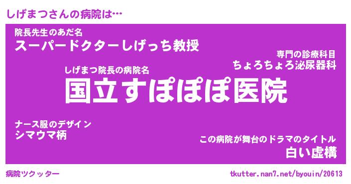 | ピコ太郎風あだ名 | 『シコ五郎』『ピシ三郎』『シゲ三郎』 |