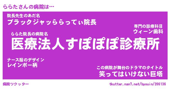 | 2回繰り返すあだ名 | 『らららら』『らららら』『ぶかぶか』 |
