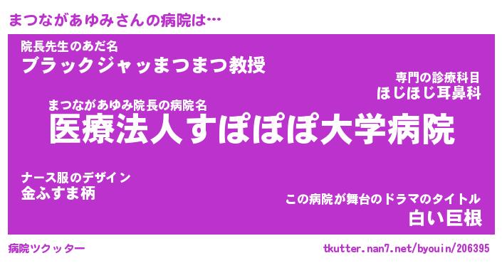 | 肩書あだ名 | 『まつながあゆみ社長令嬢』 |