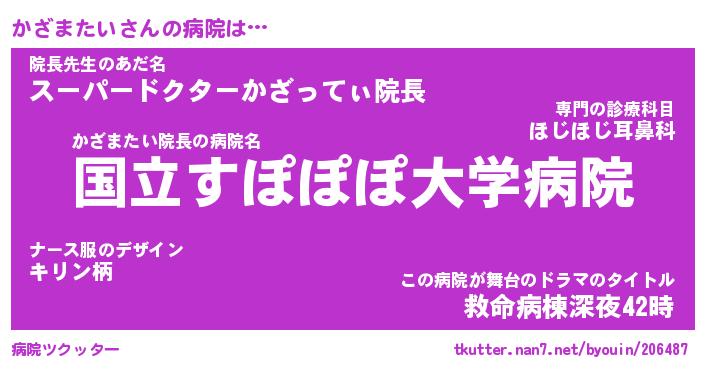 | 伝説のあだ名 | 『伝説のスナイパーかざまたい』 |