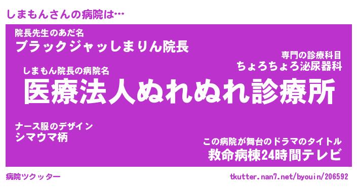 | 2回繰り返すあだ名 | 『しましま』『ししまま』『ぬれぬれ』 |