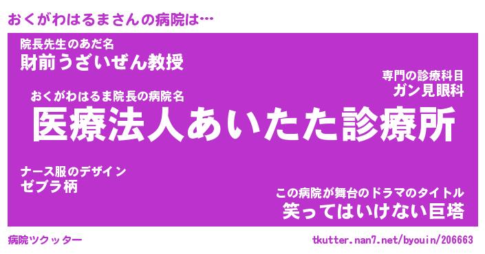 | 胡散臭い通販商品みたいなあだ名 | 『億万長者になれる霊験あらたかなお札…その名も「おくがわはるま」』 |