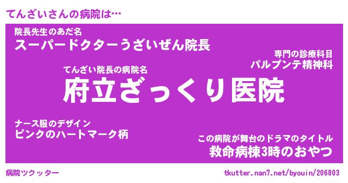 | 意味不明あだ名 | 『ペロリンてんざい』『永久保存てんざい』 |