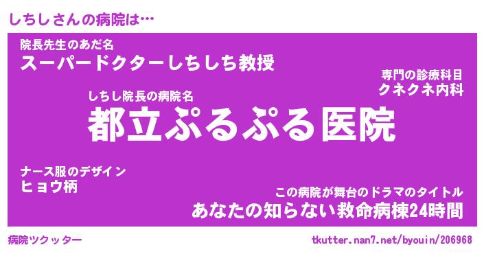 | ヒーロー風カッコイイあだ名 | 『スーパーシチシ』『ウルトラしちしマン』 |