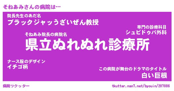 | 2回繰り返すあだ名 | 『そねそね』『そそねね』『ぬらぬら』 |