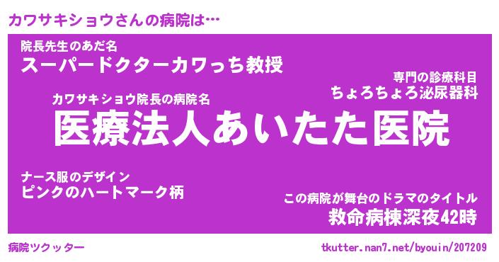 | 欧米人風あだ名 | 『マイケルカワサキショウ』 |