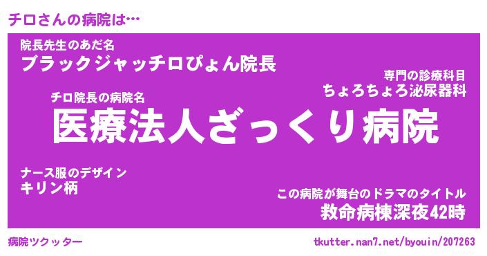 ヘコむあだ名 | 『チロもー』『なまこ酢』『チロっぺ』 |