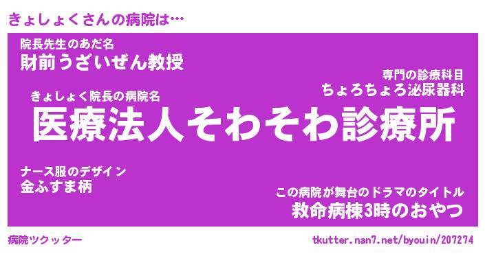呪いの病院の様だw …「あさぎ」 | 3月30日 10:32 |