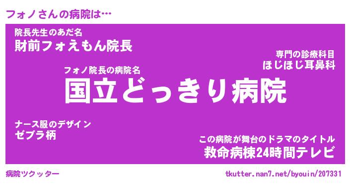 男性向けラノベタイトル風あだ名 | 『フォノの憂鬱』 |